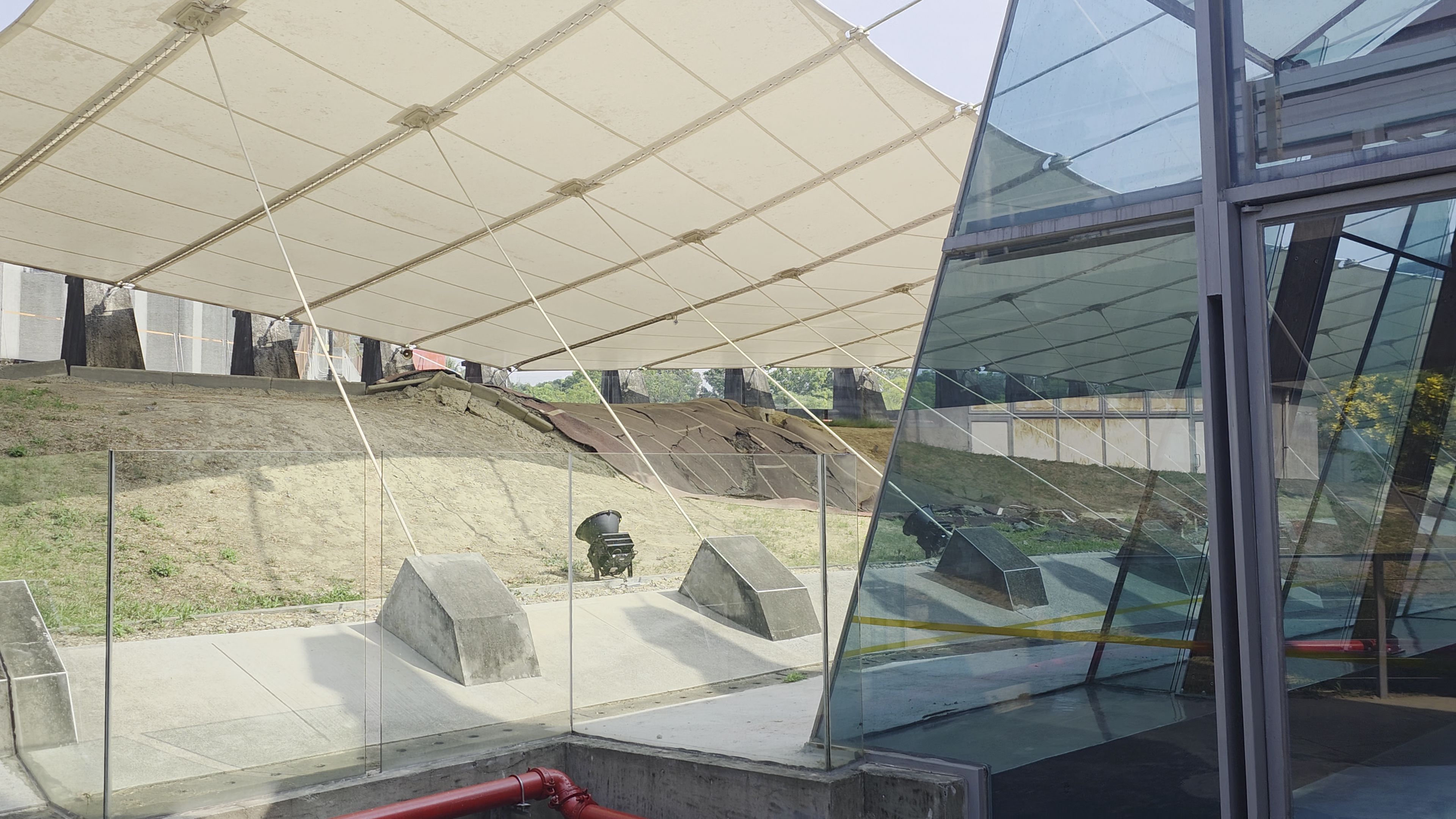 921 대지진 당시 지표면이 최대 10m 가까이 수직으로 솟아오르는 등 지형에 엄청난 변화를 줬는데요. 하지만 시간이 지나면 단층이 솟구친 모습을 확인하기 쉽지 않죠. 하지만 이걸 확인할 수 있는 곳이 바로 차룽푸 단층 갤러리입니다. 지진으로 인해 평평했던 광복중학교 운동장이 약 2.5m 높이로 솟아오른 모습을 그대로 볼 수 있는데요. 단층이 지표면을 뚫고 나온 희귀한 지질학적 현장을 눈앞에서 확인할 수 있습니다. 그리고 그 단층선이 지표면으로 드러난 지점 바로 위에 갤러리가 조성됐죠.