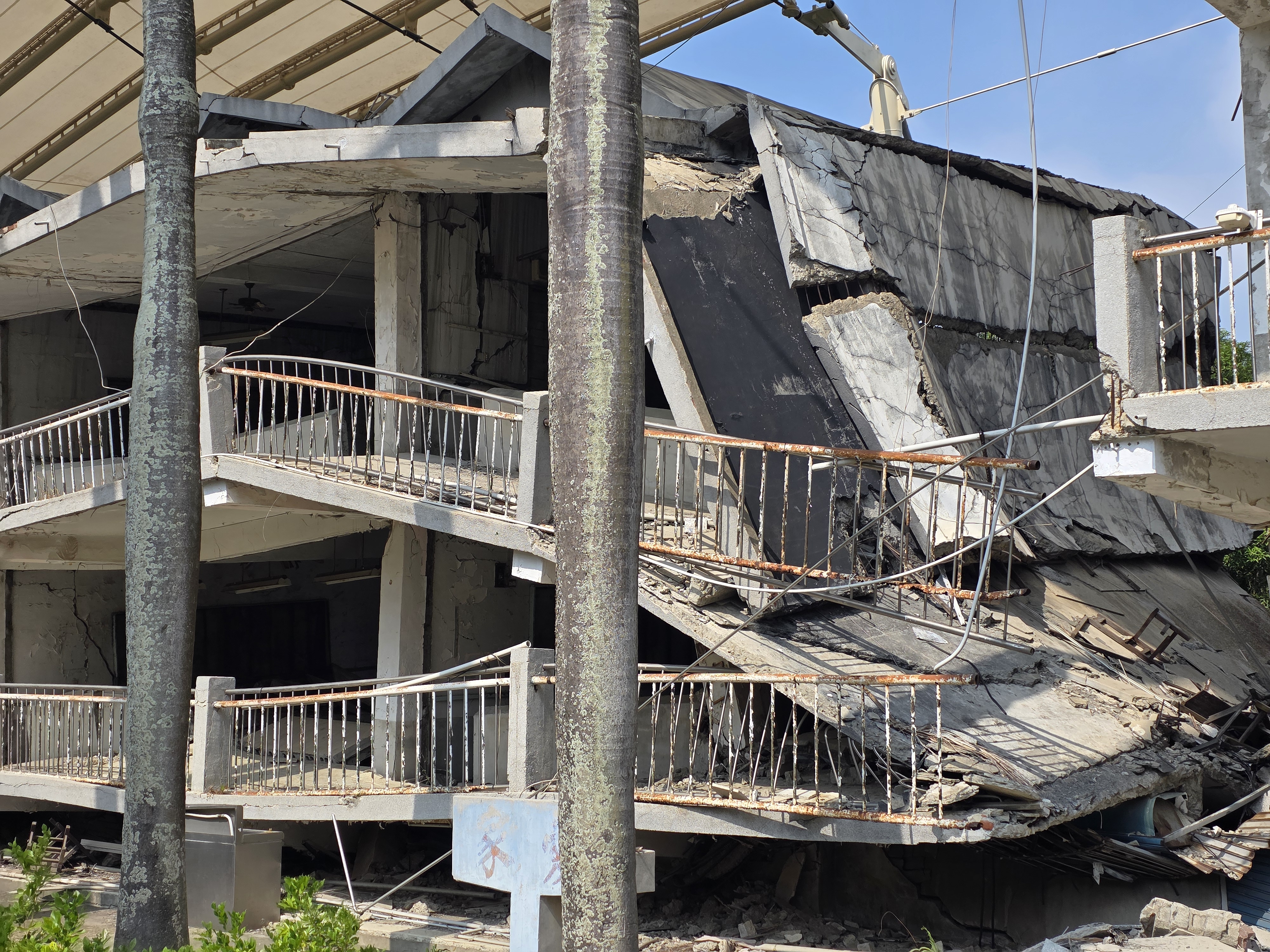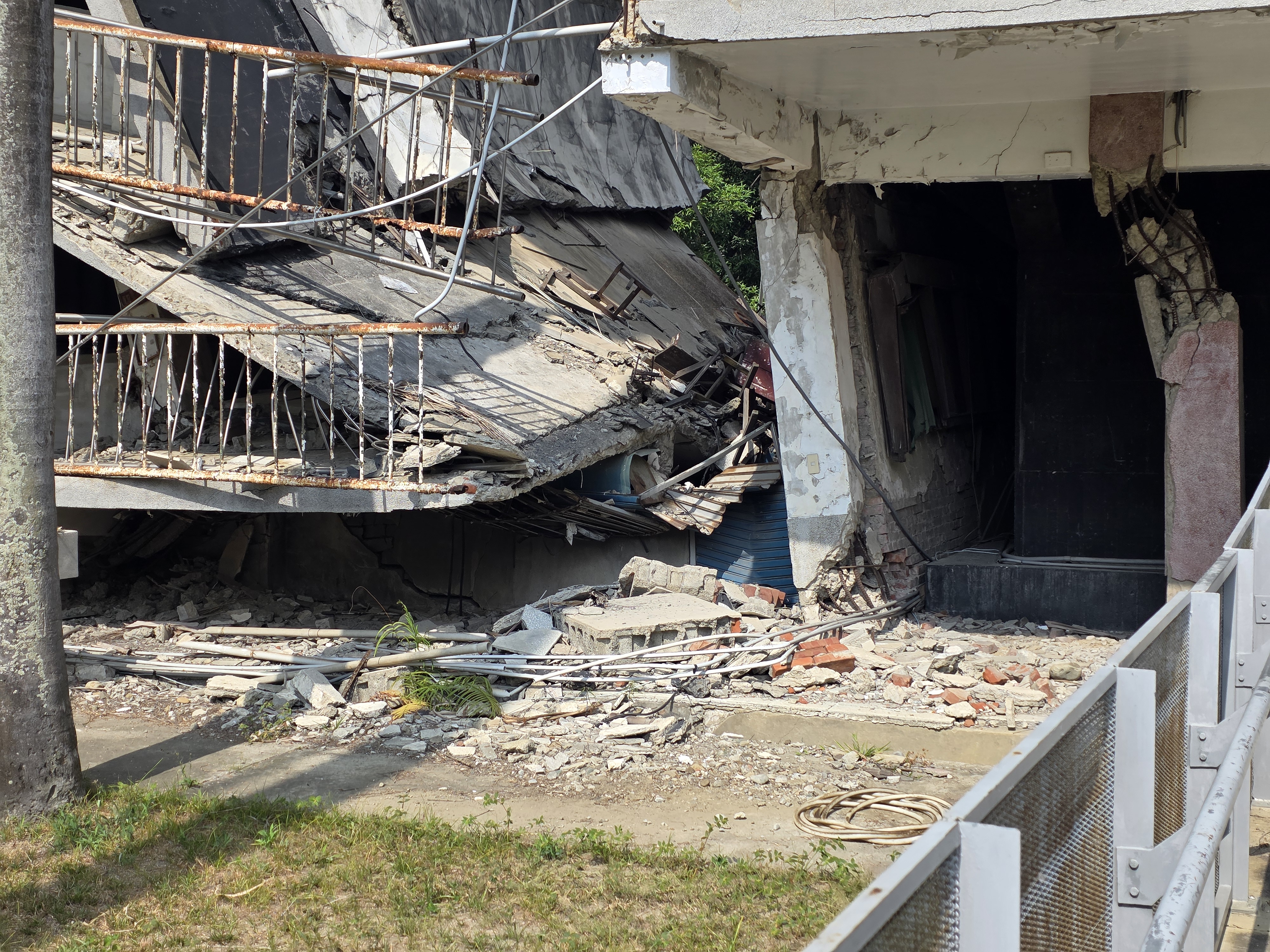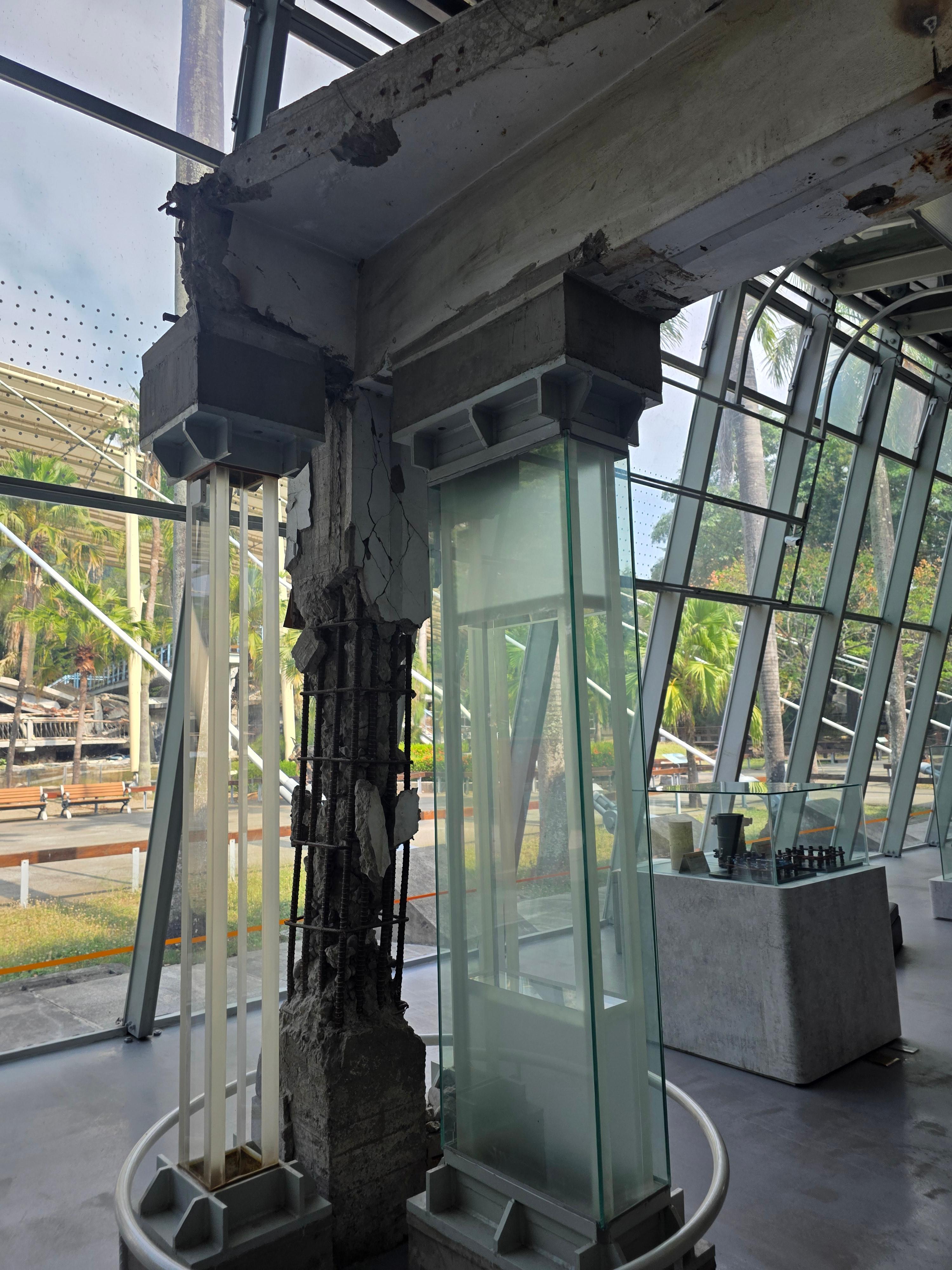 2번째 방문 시설은 지진 공학관 (Earthquake Engineering Hall)입니다. 원래는 광복중학교였던 건물인데요. 지진으로 처참하게 무너졌죠. 기둥이 엿가락처럼 휘어지고 층과 층 사이가 완전히 내려앉은 건물을 통해 지진의 파괴력을 실감할 수 있는데요. 정부는 완파된 학교 건물을 철거하지 않고 무너진 상태 그대로 보존해 전시관으로 꾸몄습니다. 차룽푸 단층 갤러리가 '자연의 힘'을 보여줬다면, 그 힘이 '인간의 건축물'에 어떤 영향을 미쳤는지를 생생하게 보여주는 공간인 셈이죠. 또한 현대 공학의 기술을 이용해 무너진 교사 건물에 내진 설계를 설치해 뒀는데요. 이를 통해 내진 설계의 중요성을 설명하고 있습니다.