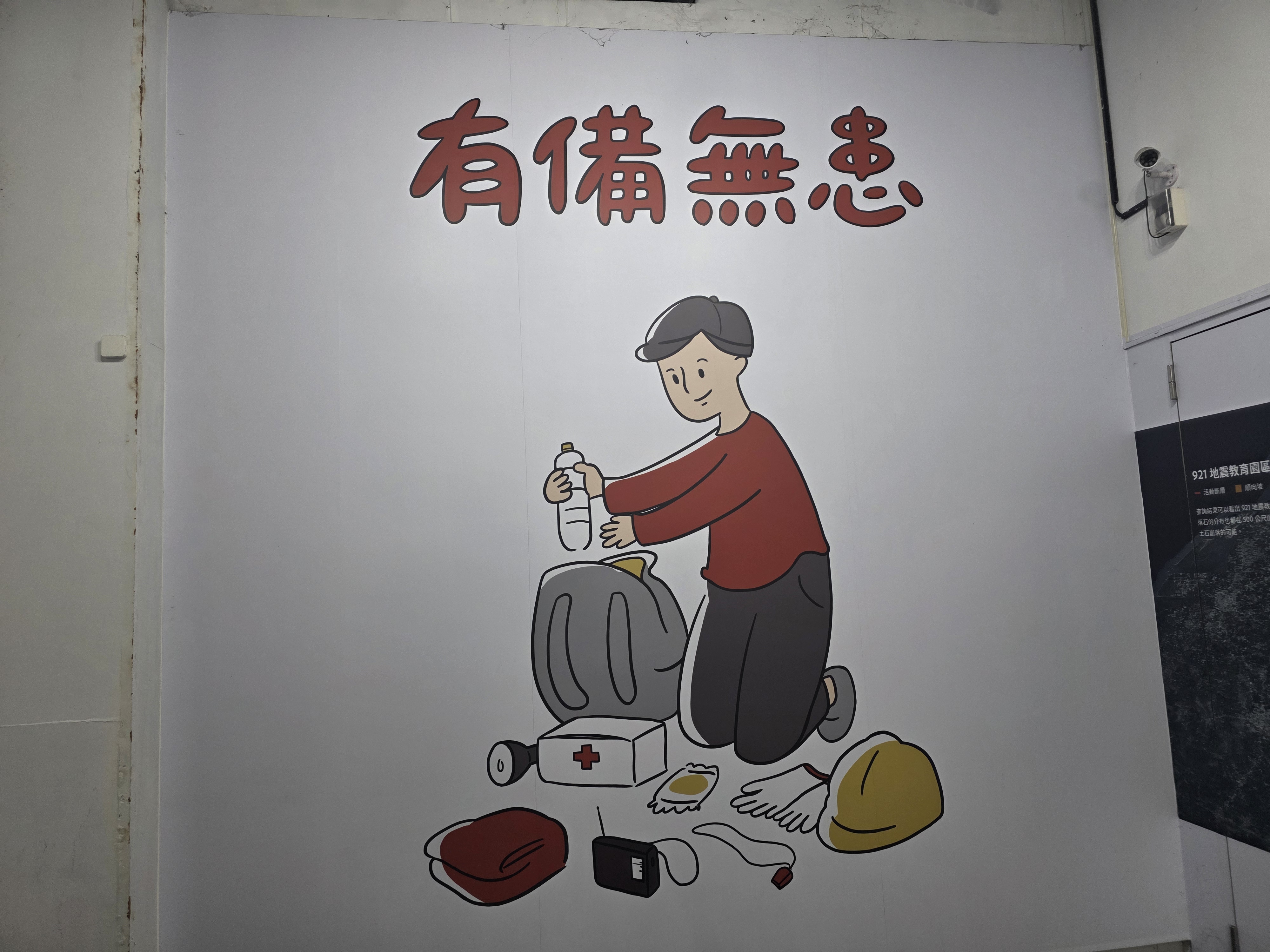 마지막 방문 시설은 '방재관(Disaster Prevention Hall)'과 '재건 기록관(Reconstruction Records Hall)'인데요. 비극적인 사고 이후 대만이 어떻게 미래를 준비하고, 무너진 삶을 다시 일으켜 세웠는지를 보여주는 '희망과 실천'의 공간입니다. 방재관은 '다시는 이런 비극이 반복되지 않게 하자'는 목적으로 만들어진 실습형 교육 공간입니다. 지진 발생 시 실내나 실외에서 어떻게 몸을 숨겨야 하는지, 비상용 생존 배낭에는 무엇을 넣어야 하는지 등을 가르쳐 주고 있습니다. 특히 아이들을 위한 공간이라서 게임이나 퀴즈 형식으로 방재 지식을 배울 수 있는 프로그램이 많습니다. 한글 번역은 없어서 대충 감으로 퀴즈도 풀어봤습니다. 또한 방재관에서는 지진뿐만 아니라 이로 인해 파생되는 화재, 산사태 등 2차 재난에 대한 대처법도 함께 다루고 있습니다.