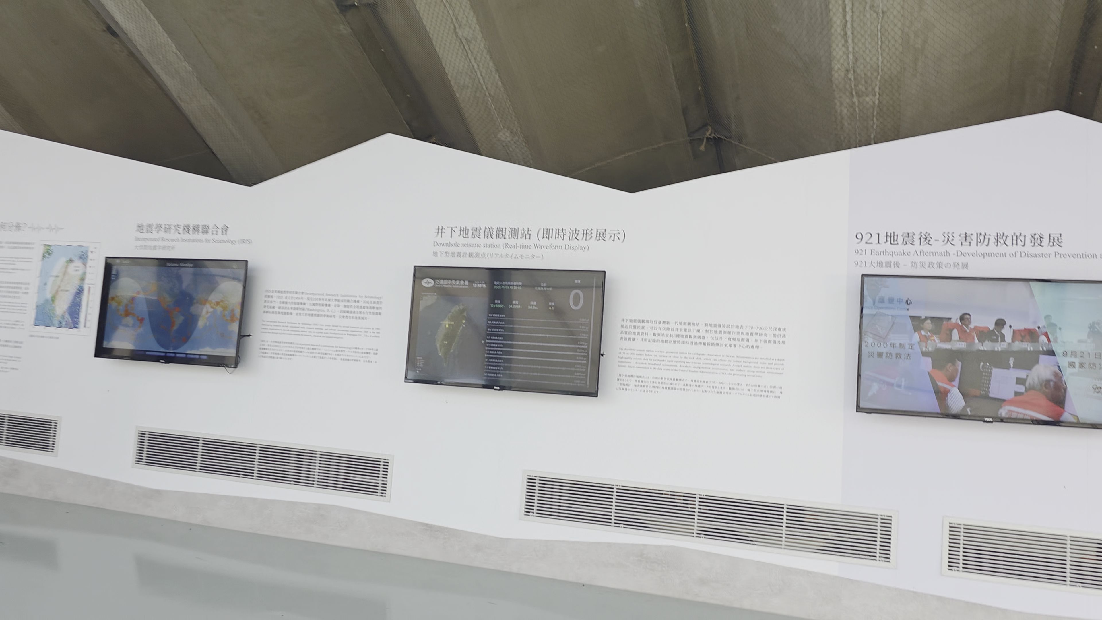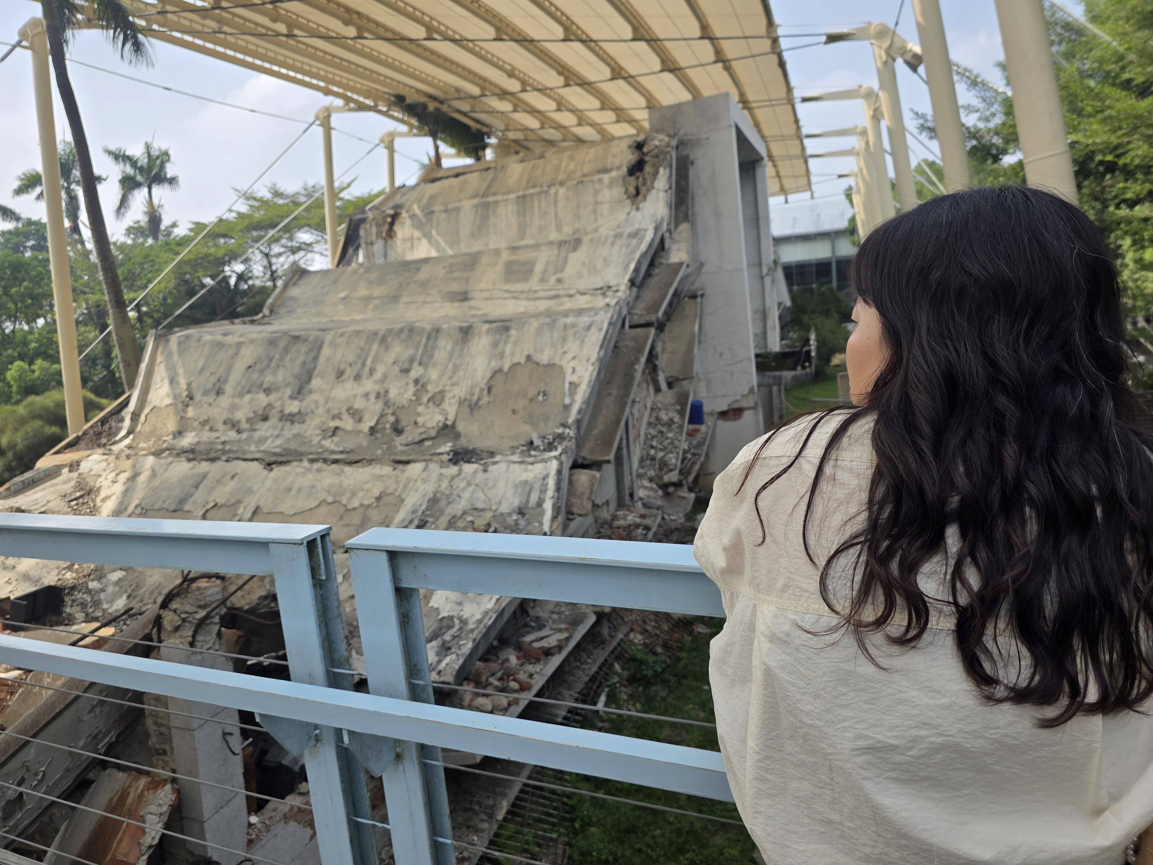 대만 정부는 구조와 복구 작업을 어느 정도 마친 후 국민들에게 지진 예방과 재난 구호 조치에 주의를 기울일 것을 상기시키기 위해 교육시설 구축을 검토했는데요. 정부, 학자, 전문가들은 광푸중학교 기지의 단층, 학교 건물 붕괴, 융기된 강바닥 및 기타 지형이 여러 후보 지역 가운데 가장 우수하다고 판단하고 921지진교육원구를 만들게 됐습니다. 2001년 2월 13일, 921지진교육원구라는 공식 명칭을 지정했고요. 지진 발생 5주년인 2004년 9월 21일 1단계 부분 개장했습니다. 그리고 지진공학관과 영상관, 방재관 등이 순차적으로 완공돼 2007년 9월 현재 모습으로 완전 개장하게 된 거죠.