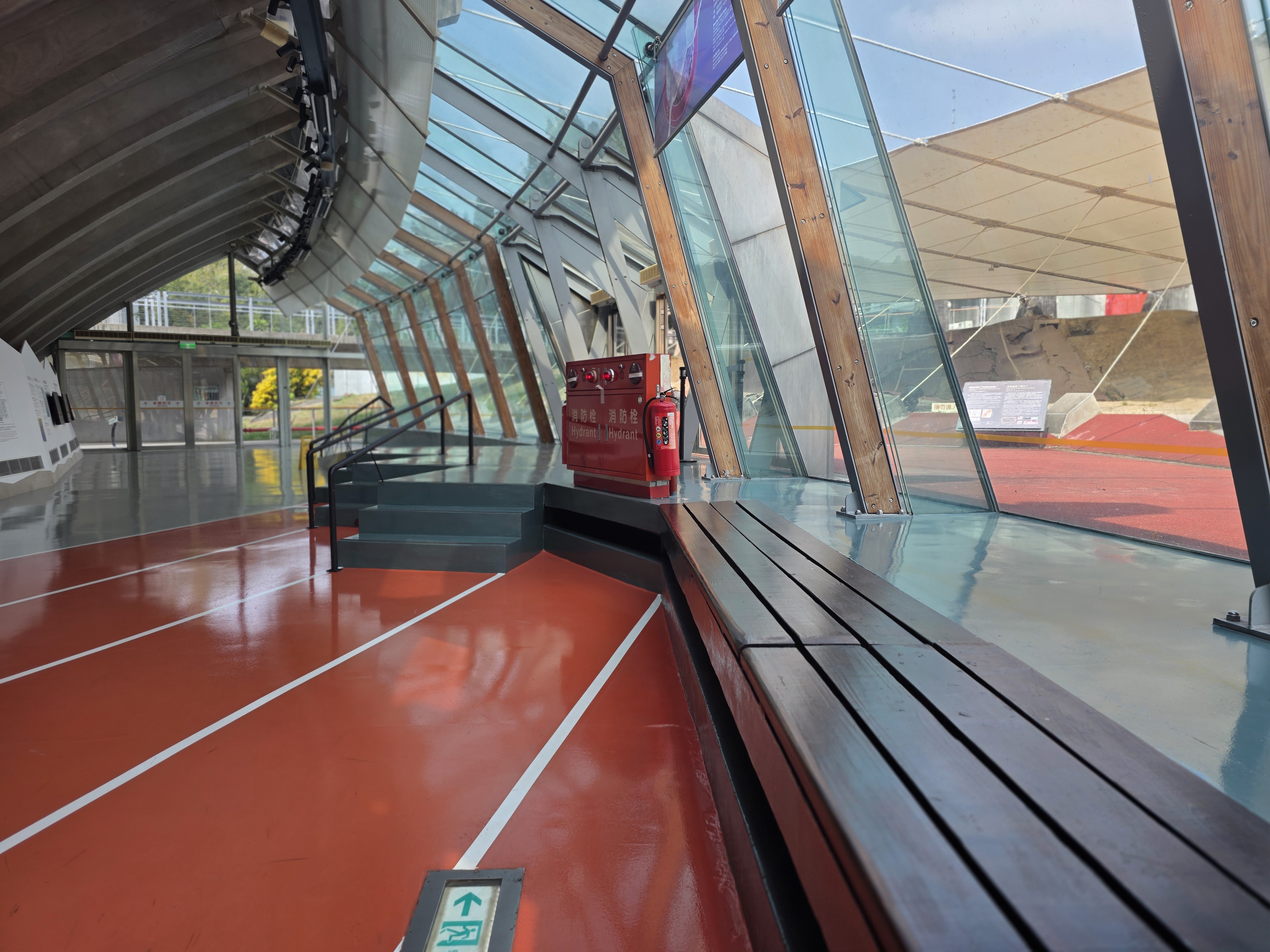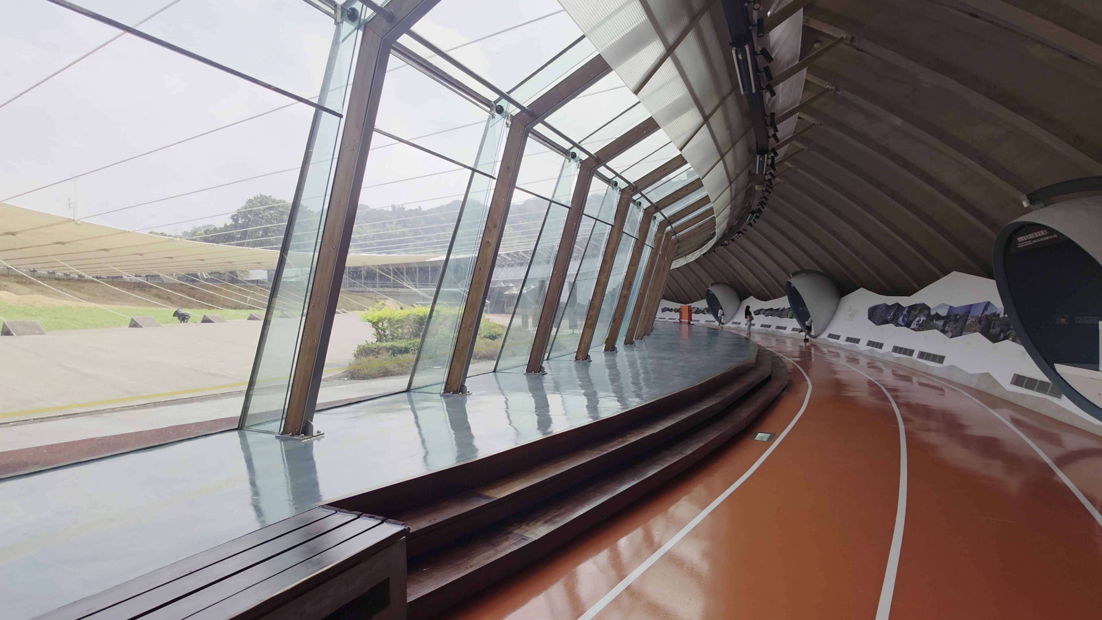 시설은 훼손되기 쉬운 흙과 지형을 보호하기 위해 단층선을 따라 길게 반원형 돔 형태의 지붕을 씌운 형태인데요. 건물 콘셉트는 '바늘'과 '실'입니다. '상처를 꿰맨다'는 의미를 담고 있죠. 갤러리 기둥들이 마치 바늘처럼 지면을 두르고 있고, 전체적인 곡선 구조는 지진으로 찢겨진 대지의 상처를 치유하는 형상을 하고 있습니다. 그리고 내부는 과거 운동장임을 알리기 위해 트랙 형태로 구성했죠. 아름다운 모습과 내면에 담긴 의미 때문에 '차룽푸 단층 갤러리'는 건축학적으로도 높은 평가를 받고 있습니다. 이곳에서는 유리창을 통해 단층의 단면을 직접 관찰할 수 있는데요. 수만 년 동안 쌓인 지층이 단 한 차례 지진에 어떻게 뒤틀렸는지 볼 수 있습니다. 또한 내부에서는 인터랙티브 전시물을 통해 지진 발생 매커니즘을 공부할 수 있죠.